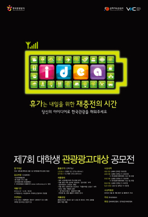 [프라임경제] 한국관광공사(사장 이참)는 대학생들의 참신한 아이디어를 발굴하고, 관광산업에 대한 관심을 높이기 위해 오는 4월 16일까지 ‘제7회 대학생 관광광고대상 공모전’을 개최한다.