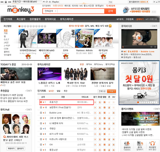 현재 몽키3(www.monkey3.co.kr)에서 화제의 신곡 에이트의 ‘유효기간’ 음원과 뮤직비디오를 감상할 수 있다.