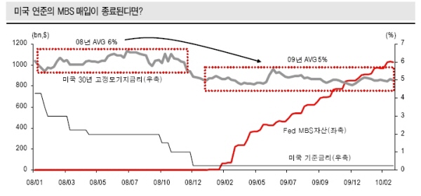 단기적으로 발생할 수 있는 문제에 집중할 필요가 있다. 즉, ‘MBS매입 종료-모기지금리 상승’으로 이어질 경우 주택경기 부진에 대한 우려가 시장에 부정적인 이슈로 불거질 가능성이있다는 점이다.