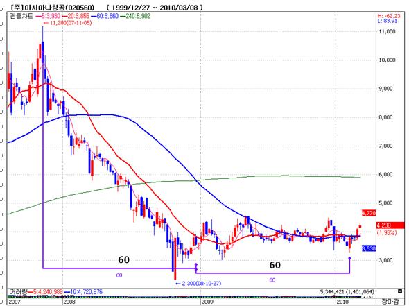 아시아나항공 주봉차트 |