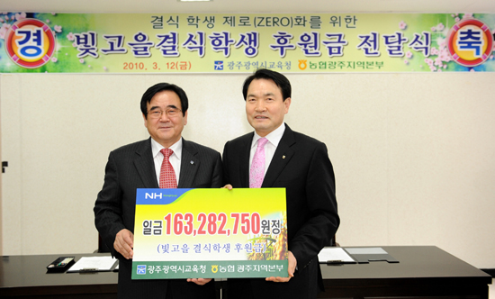 한편, 광주광역시교육청 관계자는 전달받은 기금을 ‘빛고을 결식학생 후원금’으로 충당하여 가정형편이 어려운 결식아동 중식지원비로 사용할 예정이라고 말했다.