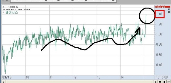 만기이후 베이시스가 확대되며 프로그램 매수세를 부르는 형태를 취하는 등 긍정적인 모습이 많이 포착된다. 16일은 마감 시 베이시스를 1.4p까지 끌어올리며 강한 선물의 힘을 보여주며 끝났다. 17일 아침장에 베이시스추이의 지속여부가 장 초반 장세에 주목이 되는 시점에 있다.