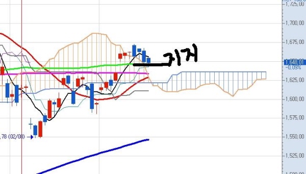 16일 코스피 지수가 등락폭을 보이며 1.49pt 내린 1,648.01로 마감하였다. 일봉상 지지점인 60일선을 지지하였으며 일목차트상 전환선 상단에서 지지하는 모습을 보이며 지수를 방어해 갭 메우기에 대한 우려는 일어나지 않았다. 하지만, 전환선이 붕괴될 경우 1,635까지는 열려있다는 점에서 주의해야 할 것이다.