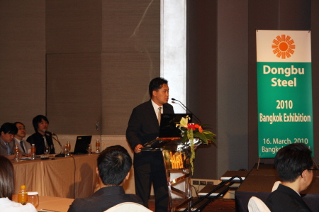 | <사진설명= 지난 16일 태국 방콕 그랜드 밀레니엄 스쿰빗 호텔서 동부제철 관계자가 83개사 148여 바이어에게 동부제철 제품설명을 하고 있다> | ||