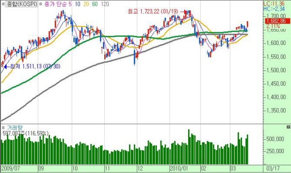 다만, 단기적으로 이를 확인하고자 하는 심리와 엇갈린 결과를 보여주고 있는 경제지표에 의해 변동성 장세가 나타날 수 있다는 점과 투자심리를 호전시킬 수 있는 단기 모멘텀이 없는 상황이라는 점에서 지수는 좀더 방향성을 탐색하는 흐름을 보일 것으로 판단된다. 당분간 박스권 장세(KOSPI 1,630~1,700선 초반)가 이어질 개연성이 높아 보인다.