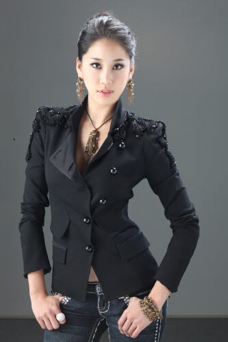 이번 화보에서 김주리는 스모키 아이와 붉은 입술을 강조한 메이크업으로 섹시한 모습을 보여주었다. 또한 비즈로 장식된 엣지있는 재킷에 청바지를 매치하고 자신감 있는 포즈를 선보이며 당당한 매력을 한껏 뽐냈다. 특히 이 재킷은 라펠이 깊게 파여 가슴라인이 살짝 드러나며 도발적인 느낌을 주고 거기에 엔틱 느낌의 볼드한 주얼리를 착용하여 글래머러스함을 느낄 수 있게 하였다.