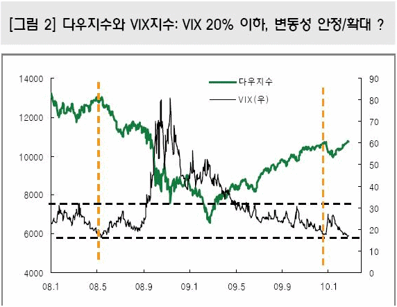 [그림2] 다우지수와 VIX 20% 변동성 확대구간