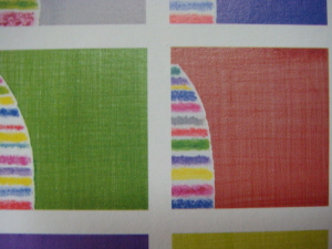 | ▲ 이규환 작가가 주장하고 있는 색동벽화 작품 디자인이 LG제품 문양으로 바뀌는 과정. 좌측부터 ⓛ색동 벽화 작품 문양 ②색동문양을 확대 ③LG제품디자인 문양 ④LG 측에 이메일로 보낸 색동 디자인 스케치 |