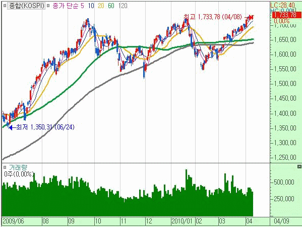 이러한 우려에도 국내 증시는 상승 흐름을 이어갈 것으로 전망한다. 외국인 투자자가 19 거래일 연속 거래소에서 순매수를 이어가고 있고 2010년 1분기 기업이익이 분기 사상 최대를 기록할 것으로 전망되기 때문이다. 이는 대규모 펀드 환매에도 지수가 밀리지 않았던 데에서도 알 수 있다.