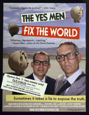 모두가 행복한 세상, 정의가 살아 있는 세상을 위해 지금도 숨가쁘게 달리고 있는 예스맨의 활동보고서 <예스맨 프로젝트>는 전국 CGV 무비꼴라쥬 전용관과 중앙시네마, 천안 야우리, 대구 동성홀 등 전국 11개관 극장에서 절찬 상영 중이다.