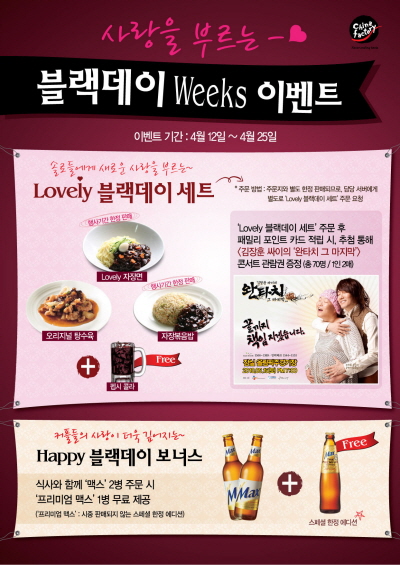 [프라임경제] 발렌타인데이, 화이트데이에 사랑을 이루지 못한 솔로들을 위해 서로를 위로하며 자장면을 즐기는 ‘블랙데이’에 새로운 사랑을 부르는 즐거운 이벤트가 마련된다.