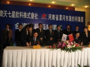 롯데칠성은 지난 7일 하남성 정부접대청 회의실에서 롯데그룹 신동빈 부회장과 롯데칠성 이종원 대표이사, 그리고 뤄허창다실업 유한공사 진송부사장 등 관계자 50여명이 참석한 가운데 뤄허창다실업유한 공사와 합자 조인식을 가졌다고 전했다.