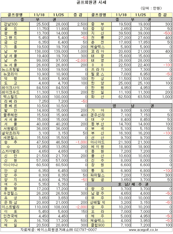 이밖에 수도권 근교의 인기클럽들과 저가의 회원권들은 상황에 따라 좌충우돌하는 전형적인 혼조세를 이어가고 있다.