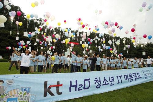 KT 노동조합이 12일까지 1박2일 동안 대전 KT인재개발원에서 ‘KT H2O 청소년 IT 여름캠프’를 개최했다.