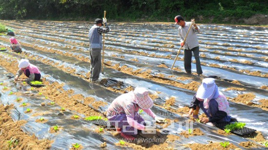 읍면직원과 노인일자리사업 참여 어르신들이 구슬땀을 흘리며 파종한 이 작물들은 올 겨울 자원봉사단체의 도움을 받아 김장을 실시, 독거노인과 경로당 등에 전달될 예정이다.