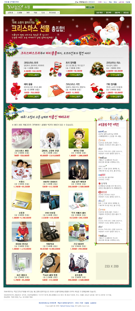 또한 애완 동물, 2007년 다이어리, 명품 시계, 골프 용품 등 크리스마스 선물로 인기가 많은 15개의 ‘지름신 카테고리’를 선정, 다양한 가격대 별로 한 카테고리 당 3천5백 개 이상의 상품 목록을 제공해 선택의 폭을 넓혔다.