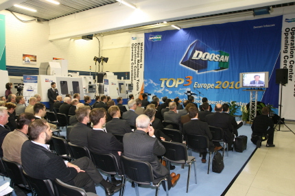 두산인프라코어는 최근들어 복합가공기와 고속 머시닝센터 등 첨단제품의 판매가 급증하면서 고객들의 기술지원 요청이 증가함에 따라 이를 직접 제공하는 체제를 구축함으로써 고객 만족도를 향상시키기 위해 유럽 오퍼레이션 센터를 설립하였다.