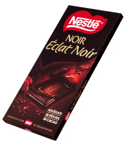 ‘에끌라 느와르’는 건조 코코아열매가 들어있어서 입안에서 녹는 느낌이 풍부한 것이 특징이며, 초콜릿의 본고장 스위스에서 생산되는 유럽식 정통 다크 초콜릿이다.