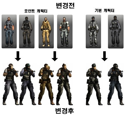 변경된 캐릭터는 기본 캐릭터 2종과 포인트 캐릭터 4종으로 전투 환경에 적합하고 현대적인 감각을 최대한 살릴 수 있도록 했다.
