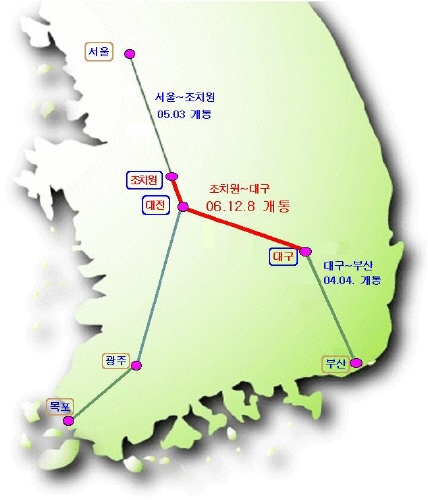 건설교통부는 경부선 마지막 디젤선로인 조치원~대구간 158Km를 오는 12월8일 전철화를 완료해 개통한다고 7일