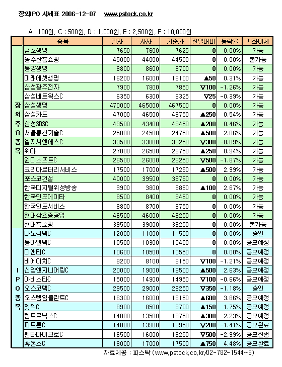 이밖에, 농수산홈쇼핑 4만4500원, 포스코건설 3만9750원, SK인천정유 1만100원을 각각 기록했다.