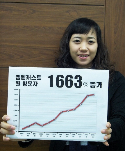 인터넷 조사기관 메트릭스 기준으로 월 방문자수(U.V)는 05년 12월 43만명에서 06년 11월 758만명으로 사이트 오픈 1년 만에 1663%의 놀라운 성장세를 보였다. 또 사용자 86%가 포털 동영상 검색을 통한 유입이 아닌 엠엔캐스트 사이트를 직접 방문한 것으로 조사되었다.