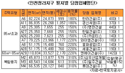 [프라임경제]인천청라 경제자유구역 개발사업 2단계 공동주택지와 복합용지 당첨업체 12곳이 결정되었다. 18일