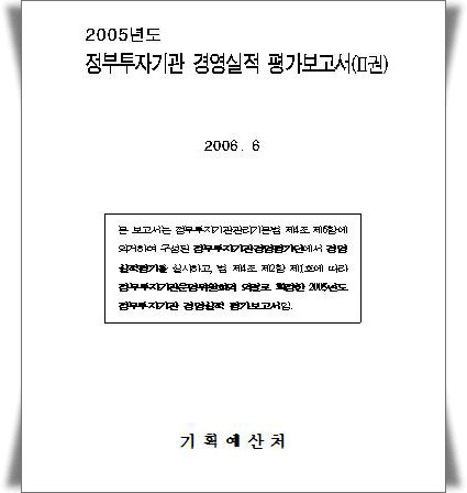 기예처의 경영평가 결과는 대통령과 국회에 보고하게 되어있는데, 이를 확정하는 정부투자기관 운영위에는 기예처 장관(위원장), 재경부 차관(부위원장) 및 주무부처 차관과 민간위원으로 구성되어 있다.