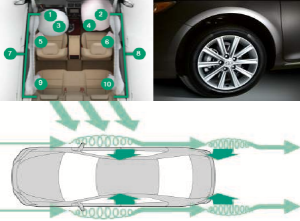 7세대 캠리에 적용된 다양한 기술 중 디테일의 최고봉이라 할 수 있는 것이 도어 미러 부근과 리어 콤비 램프에 장착된 작은 ‘에어로 다이나믹 핀’. F1에서 비롯된 이 부품은 차체에 측면을 따라 흐르는 기류에 소용돌이를 만듦으로써 유속이 빨라지고, 차체를 좌우로 밀어 넣는 힘이 작용해 주행안정성을 더욱 향상시킨다.