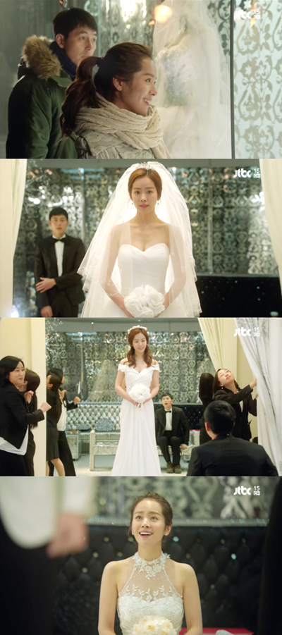 JTBC 개국특집 월화 드라마 '빠담빠담…. 그와 그녀의 심장박동소리' 17회 분에서는 강칠(정우성)과 지나(한지민)이 웨딩샵에 들어가 웨딩드레스를 입어보는 장면이 방영되었다.