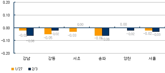 | 서울 주요구 매매값 주간변동률(전주 대비). 부동산114. | ||