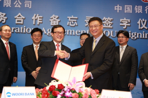 우리은행 이순우 행장과 중국은행 리 리후이 행장은 중국 베이징에서 이런 내용의 포괄적업무제휴 양해각서(MOU)를 맺었다고 5일 밝혔다.
