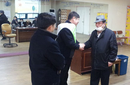 | 김경진 민주통합당 광주 북구 갑 예비후보가 지난 3일 문흥2동 주민센터에서 열린 어르신이발봉사 행사에 참석해 봉사자들을 격려하고 관내 어르신들의 애로사항을 수렴했다. | ||