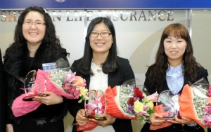 | 신한생명은 지난 1월27일 지난 한 해 동안의 상담효율 평가, 업무정확도, CS, 통화품질 및 직무평가 등을 종합적으로 평가해 ‘콜센터 연도대상 시상식’을 개최했다. (좌로부터 장은주ㆍ조금희 상담원, 강순주 실장) | ||