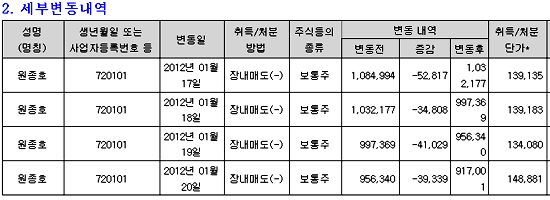 금융감독원 전자공시 내역에 따르면 원씨는 지난달 17일 5만2817주를 주당 13만9135원에 매도한 것을 비롯해 같을 달 20일까지 네 차례에 걸쳐 주당 13만~14만원대에 주식을 처분했다. 원씨는 이를 통해 총 235억5000만원 상당을 현금화했다.