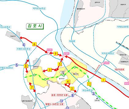 또한 기존에 추진 중인 광역도로 3개 노선(15.6km, 2009년 완공)과 일산대교건설(1.8km, 2007년 완공), 송포~인천간도로(3.5km, 2008년 완공) 사업 등 주변 교통개선 사업도 추진할 계획이다.