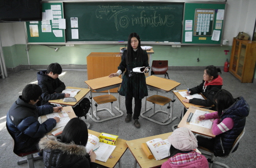 | 삼성이 저소득층 중학생 1만5000명을 대상으로 실질적인 학습능력을 높일 수 있도록 방과후 학습을 지원하는 ‘드림 클래스’사회공헌사업을 실시한다. 사진은 지난해 12월부터 시범사업으로 방과후 학습을 진행 중인 서울 구로구의 한 중학교 영어 수업 모습. | ||