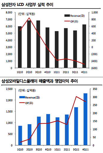 우리투자증권(005940) 박영주 연구원은 “SMD가 모바일 디스플레이 뿐 아니라 올해 AM OLED TV를 출시하면서 사업영역을 확대할 계획이기 때문에 굳이 두 부문을 분리해 운영할 필요가 없다”며 “AM OLED 기술이 진화하는 과정에서 LCD 부문이 보유한 라인을 AM OLED로 전환하면서 효율을 높일 수 있는 가능성이 충분히 있다”고 설명했다.