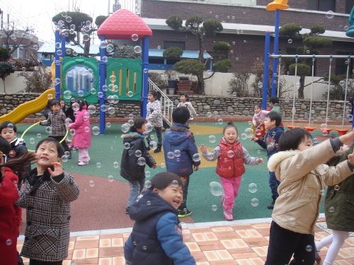 | 시립 여천어린이집에서 아이들이 비누방울 놀이를 하고 있다. | ||
