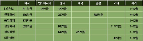 금융감독원의 ‘2010년 생보사 해외점포 영업실적’을 살펴보면 해외진출로 인한 손실액은 1310만달러에 달한 것으로 분석됐으며 손보사 또한 2011년 상반기 당기순이익이 2010년 동기대비 ‘반토막’ 난 것으로 조사됐다. 특히 손보사들의 경우 지난해 자연재해와 공장화재 등으로 입은 손실이 큰 것으로 밝혀졌다.