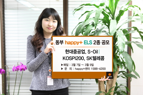 '동부 happy+ ELS 제770회'는 KOSPI200과 SK텔레콤을 기초자산으로 하는 원금 100% 보장형 상품이다. 3년 만기 상품으로 6개월 주기의 조기상환 평가일과 만기평가일에 기초자산의 종가가 최초기준지수(가격)의 100%(6·12·18·24·30·36개월) 이상이면 연 9.4%의 수익이 지급된다.