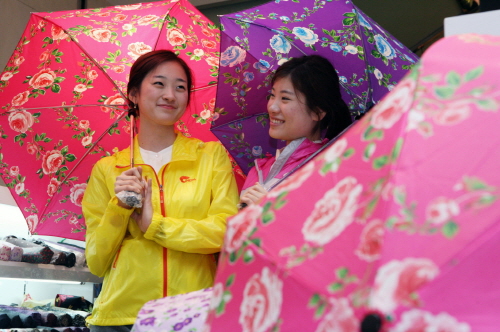 [포토]여심 흔드는 봄비 오니 꽃무늬 봄 우산 등장했네~