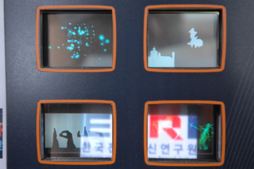 | ETRI가 이번에 개발에 성공한 투과도 조절 투명디스플레이 모습. 뒷면에 ETRI로고가 보이고 있다. | ||