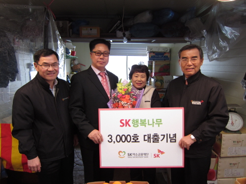 이번에 선정된 3000번째 대출자는 전북 군산시 신영시장에서 과일가게를 운영하는 김모씨로, 과일구매를 위한 운영자금 용도로 전통시장 상인 대출을 신청한 것으로 알려졌다. 지금까지 금융거래를 한 번도 해본 적이 없는 김씨가 생애 최초의 대출을 SK미소금융을 통해 받은 것이다.