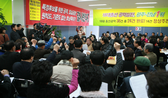 이날 회의에 참석한 고문단, 상무위원, 대의원 등 200여명의 서구갑 당직자들은 “우수한 의정활동과 성실한 지역구 활동을 펼쳐 온 조영택 의원이 공천에서 배제되어야 할 객관적 이유가 없음에도 희생된 것은 호남을 희생양 삼아 파벌의 이익을 도모하려는 사천(私薦)에 불과하다”고 규탄했다.