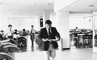 | 직원들과 함께 사내 식당에서 함께 식사하고 나오는 고 최종현 회장의 소탈한 모습. | ||