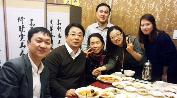 | SK증권 행복밥상으로 더욱 가까워진 참가자들이 여의도 한 음식점에서 기념촬영을 하고 있다. | ||