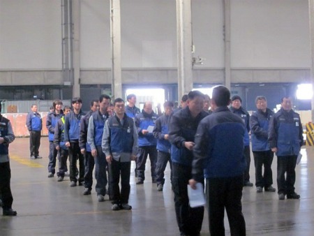 | 위드스탭스 임직원 200여명이 참석해 '사고예방 결의대회'를 가지고 있는 모습. | ||