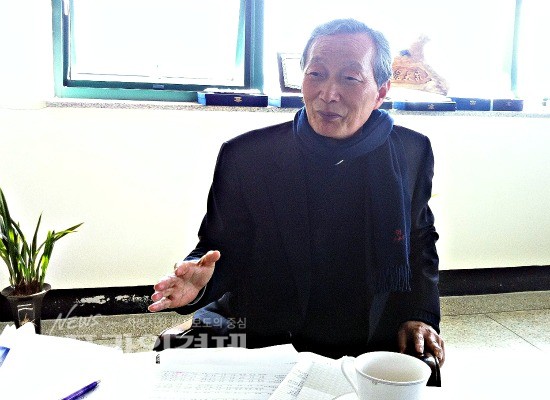 21일 오전 동아인재대학에서 만난 김경택 총장은 서류 뭉치 속에서 업무를 하고 있었다. |