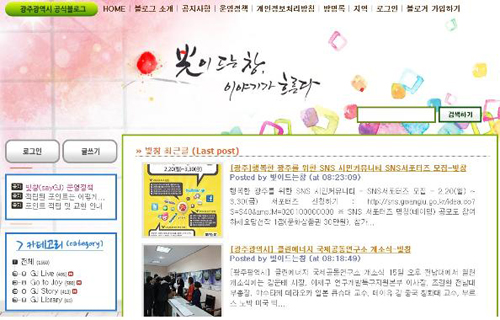 한편, 광주시 공식블로그는 전국 공공기관 최초로 한국블로그산업협회 등에서 주최하는 블로그 어워드에서 4년 연속 최우수상을 수상한 바 있다.